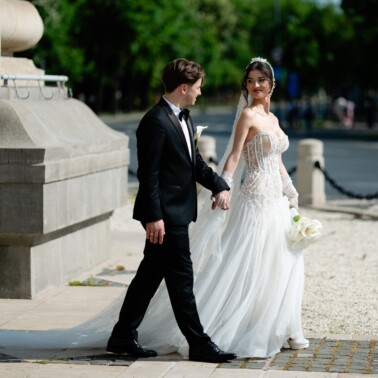 Pregătirile au avut loc în eleganta lor casă cu piscină, unde am realizat o ședință foto relaxată alături de domnișoarele de onoare, completată apoi de cadre spectaculoase la Arcul de Triumf din București. Petrecerea, animată de invitați din România și Germania, a culminat cu unul dintre cele mai impresionante dansuri ale mirilor pe care le-am fotografiat vreodată.