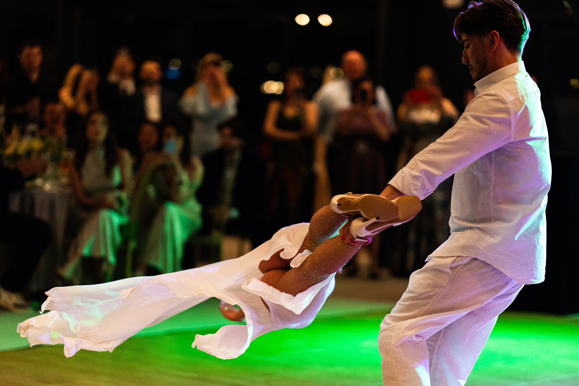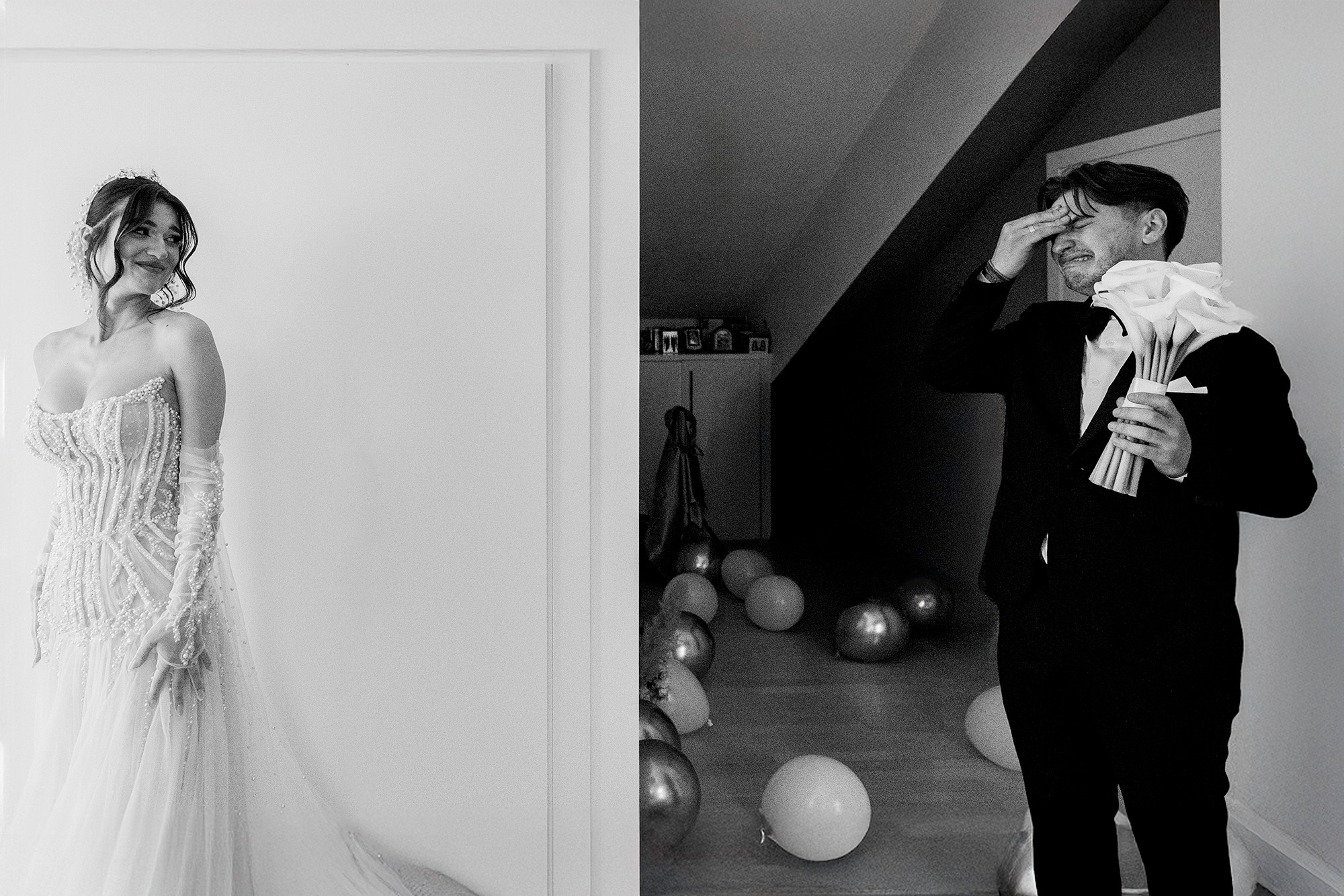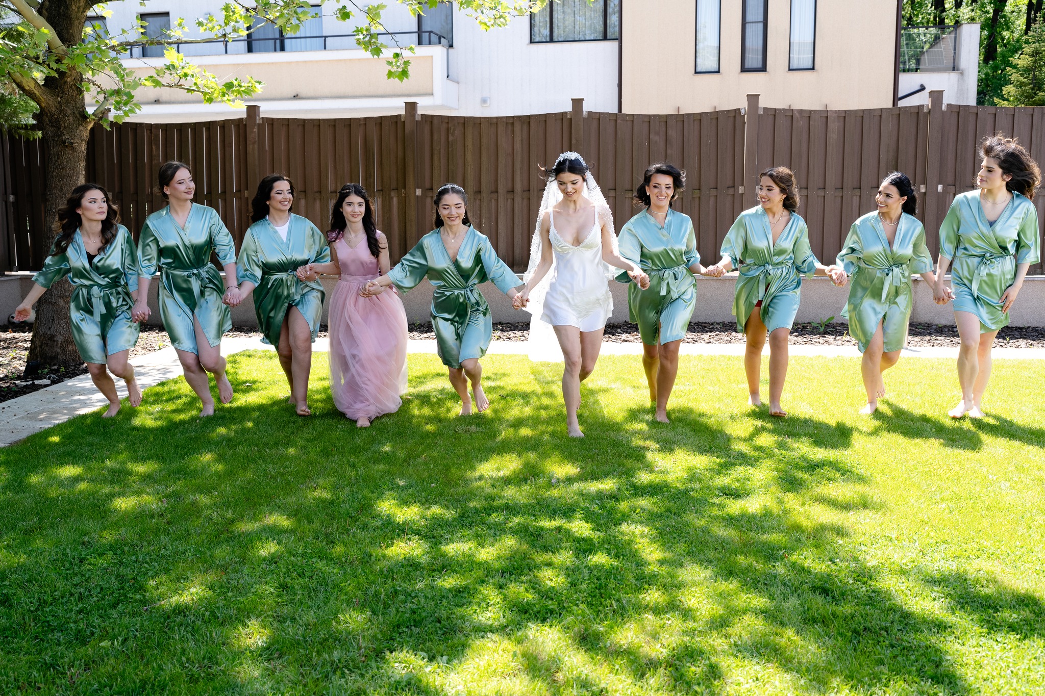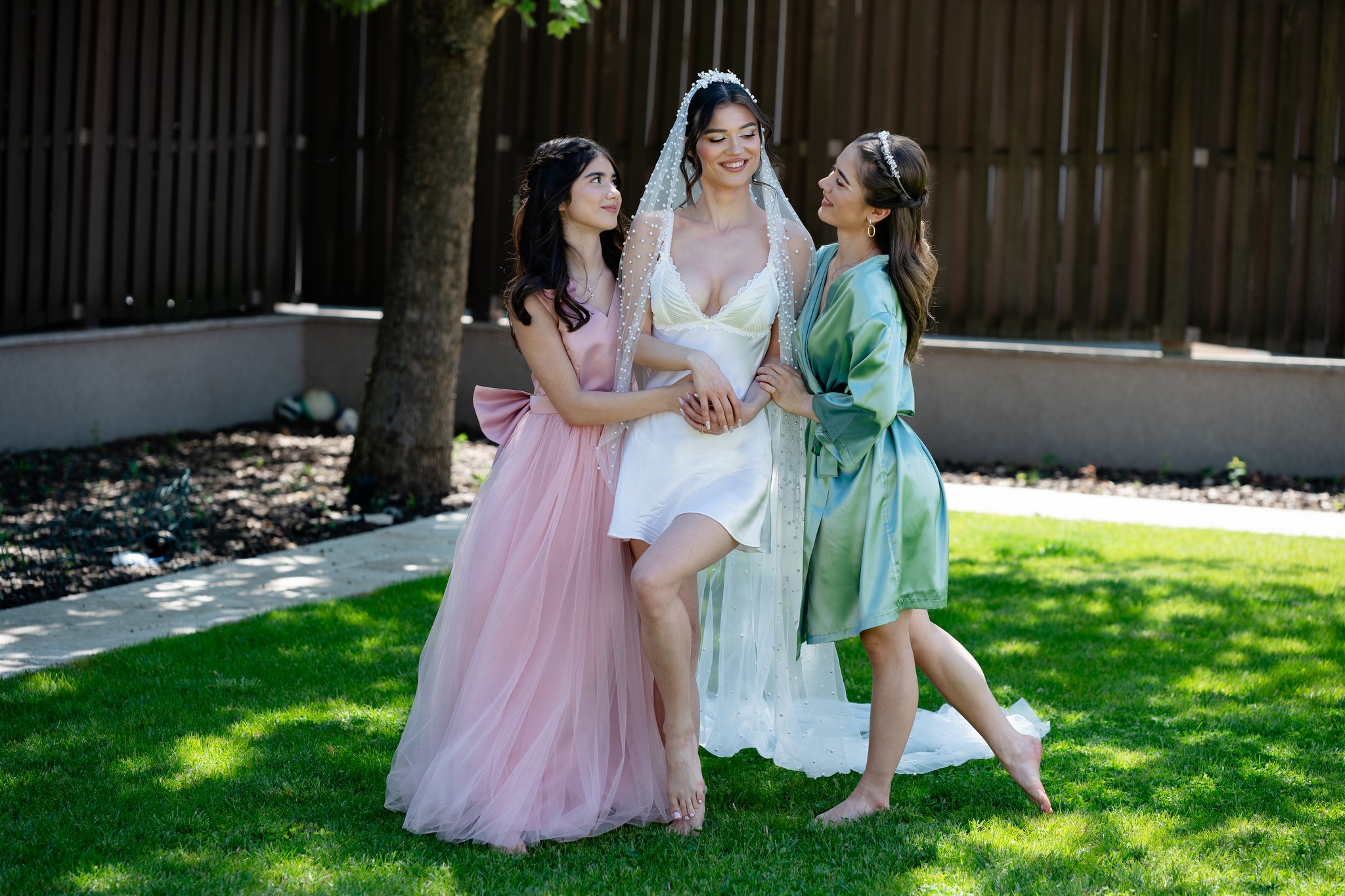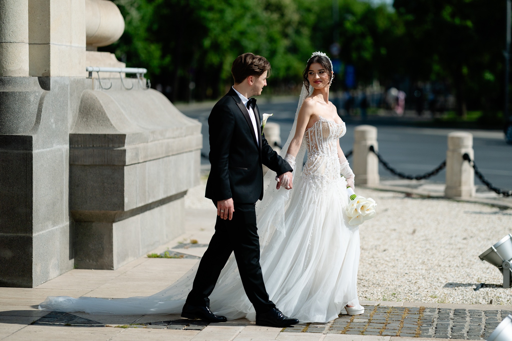 Pregătirile au avut loc în eleganta lor casă cu piscină, unde am realizat o ședință foto relaxată alături de domnișoarele de onoare, completată apoi de cadre spectaculoase la Arcul de Triumf din București. Petrecerea, animată de invitați din România și Germania, a culminat cu unul dintre cele mai impresionante dansuri ale mirilor pe care le-am fotografiat vreodată.